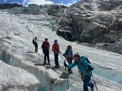 Climate hikes are guided or self-guided hiking trails designed to educate participants about the visible impacts of climate change on natural environments, such as retreating glaciers, changing biodiversity or altered landscapes, while promoting low-emission outdoor activities. Concrete examples include the "Climate Hikes" project by EcoSystem Europe, which combines alpine trekking in the Alps with on-site explanations of warming effects, and Stanzertal-Arlberg KLAR! region's trained hiking guides who lead tours highlighting forest climate stress and sustainability trails in Tyrol. Other offers can be found in the regions of Kaunertal, Alpbachtal or Saalfelden Leogang, Montafon or These initiatives support SDG 13 by raising public awareness of urgent climate action needs, encouraging emission-free recreation over motorized tourism, fostering resilience through nature-based adaptation learning, and extending tourism seasons to reduce peak-season pressures.