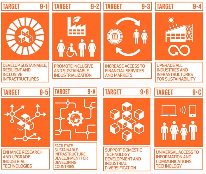 The aim of SDG 9 Industry, Innovation and Infrastructure is to build resilient infrastructure and foster innovation that supports sustainable development. It emphasizes digital connectivity, sustainable manufacturing, and research-driven progress.